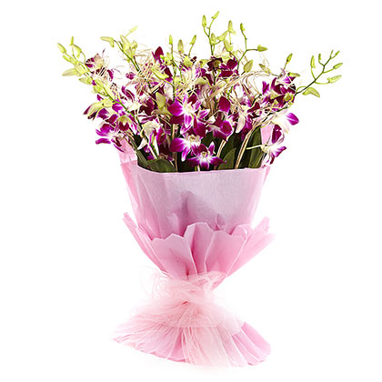 The Purple Treasure orchid bouquet in Pune is designed to impress with elegance and abundance. Featuring 15 fresh purple orchids wrapped beautifully in pink paper and finished with a matching ribbon bow, this bouquet symbolizes admiration, dignity, and luxury. Orchids are known for their exotic appeal and long-lasting freshness, making this bouquet perfect for premium gifting. Ideal for customers searching purple orchid bouquet Pune, luxury orchid delivery, or same-day flower delivery in Pune. Carefully handcrafted by expert florists, it delivers a rich visual impact and refined charm. Related Keywords: purple orchids Pune, orchid bouquet delivery, premium flowers Pune. Best For: Anniversaries, milestone celebrations, premium surprises, special occasions.